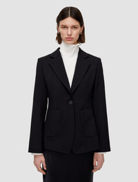 The Tailoring Wool Stretch Glenview Jacket is a regular fit, single-breasted jacket, crafted from JOSEPH's signature tailoring wool fabric. This jacket is lined with shoulder padding and features darts at the waistline for a fitted look and finish. - Designed for a regular fit - Single-breasted - Darts at waistline - Front patch pockets - Four-button cuffs - Product code: jp0016270010 SIZE ADVICE - Model wears French size 36 CARE & MATERIALS Discover the Care Guide, a guide to help you to care for your garments. - 99% Wool 1% Elastane - Do not wash - Do not bleach - Do not tumble dry - Iron low temperature setting - Dry clean normal