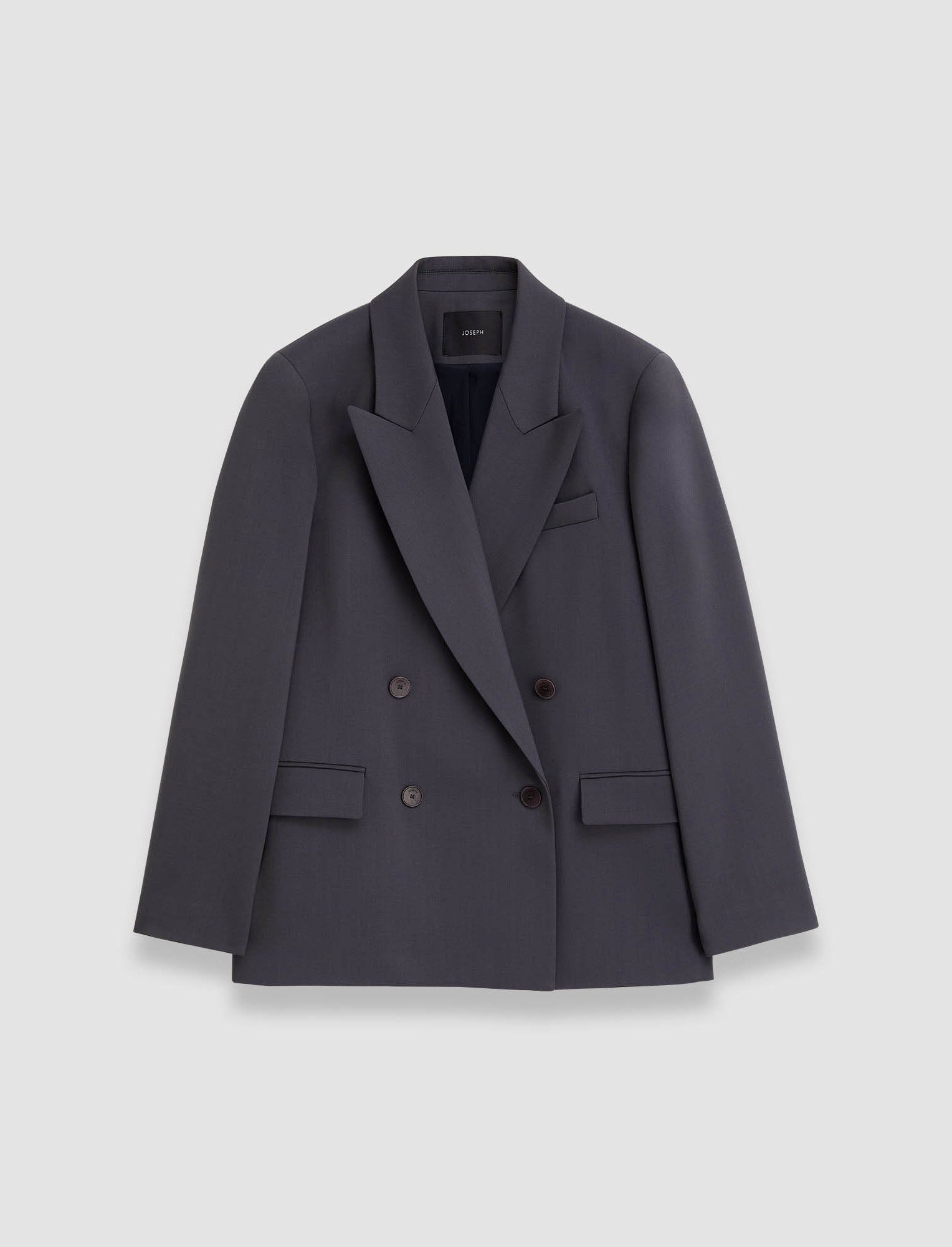 The Tailoring Wool Stretch Jaden Jacket is a regular fit, double-breasted jacket, crafted from JOSEPH's signature tailoring wool fabric. This classic style is lined with an inside chest pocket and finished with shoulder padding. - Designed for a regular fit - Double-breasted - Front flap pockets - Chest pocket outside and inside - Product code: jp0016571021 SIZE ADVICE - Model wears French size 36 CARE & MATERIALS Discover the Care Guide, a guide to help you to care for your garments. - 98% Wool 2% Elastane - Do not wash - Do not bleach - Do not tumble dry - Iron low temperature setting - Dry clean normal