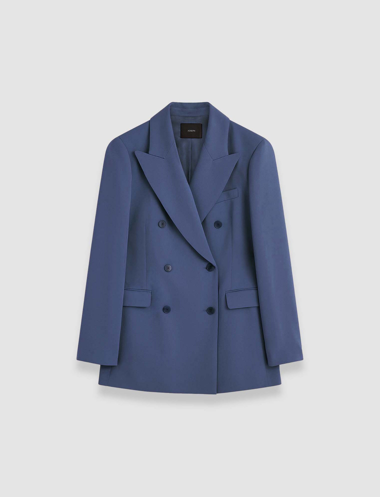 The Valery Comfort Cady Jacket is a double-breasted jacket, crafted from a visocse blend which is compact and fluid. This elegant six-button blazer features wide lapels and shoulder padding offering a sharp, tailored look. - Designed for a regular fit - Double-breasted - Welt chest pocket - Side flap pockets - Product code: jp0017111403 - Harbour Blue SIZE ADVICE - Model wears size FR 36/UK 8/EU 34/US 4/DE 34/IT 40/JP 7 CARE & MATERIALS - 77% Viscose 20% Acetate 3% Elastane - Do not wash - Do not bleach - Do not tumble dry - Iron low temperature setting - Dry clean