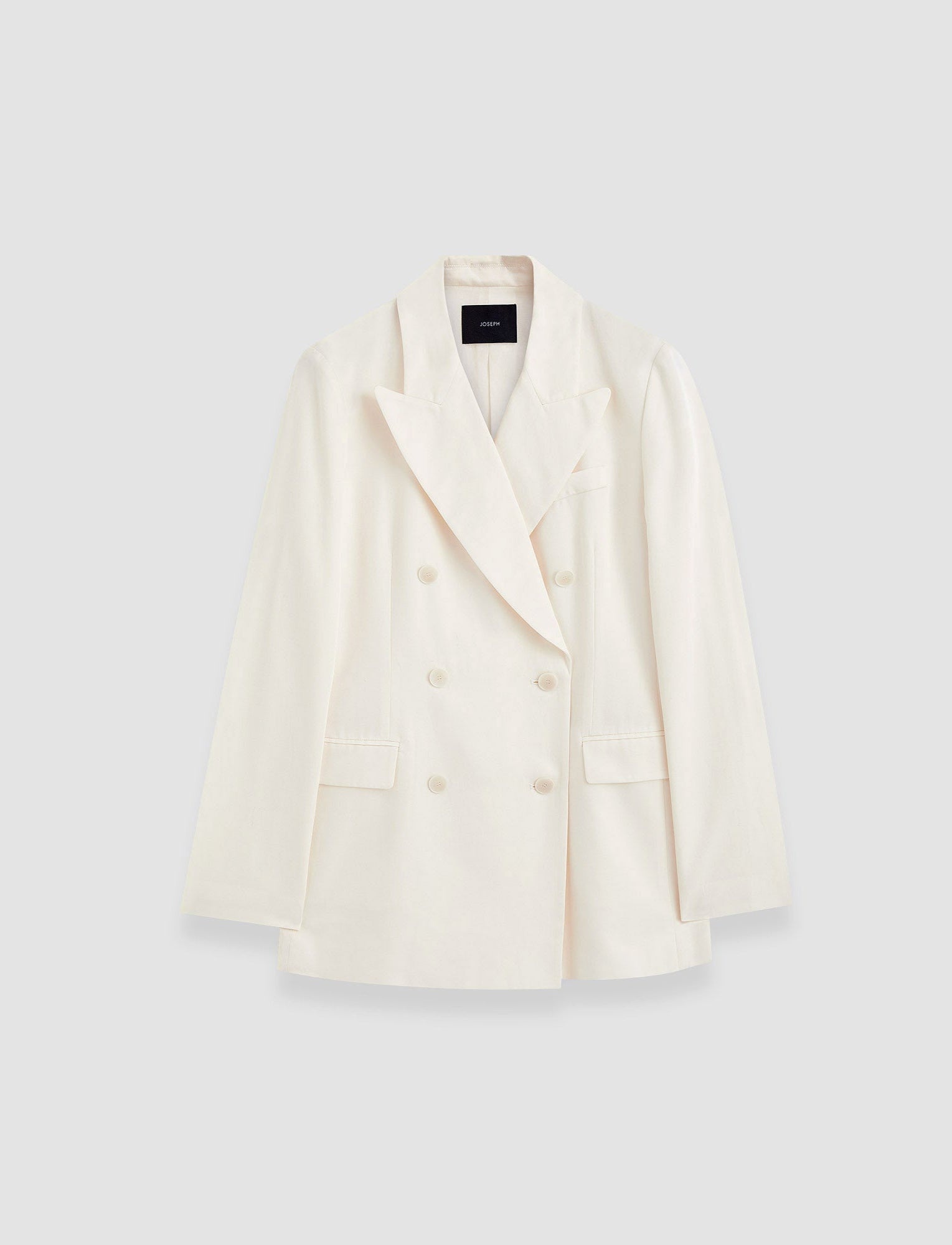 The Valery Soft Cotton Silk Jacket is a regular fit, double-breasted jacket. Crafted from silk and cotton, the fabric has a natural sheen and a silky-smooth hand feel. This elegant six-button blazer is lightweight, ideal for an off-duty, relaxed look. - Unstructured, soft tailoring - Double-breasted - Welt chest pocket - Side flap pockets - Lightweight - Product code: jf0091260045 - Ivory SIZE ADVICE - Model wears size FR 36/UK 8/EU 34/US 4/DE 34/IT 40/JP 7 CARE & MATERIALS Discover the Care Guide, a guide to help you to care for your garments. - 52% Silk 48% Cotton - Do not wash - Do not bleach - Do not tumble dry - Iron low temperature setting - Dry clean