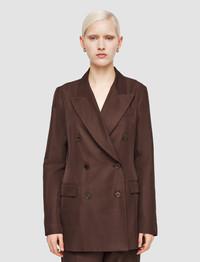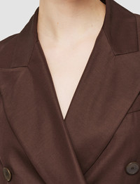 The Valery Soft Cotton Silk Jacket is a regular fit, double-breasted jacket. Crafted from silk and cotton, the fabric has a natural sheen and a silky-smooth hand feel. This elegant six-button blazer is lightweight, ideal for an off-duty, relaxed look. - Unstructured, soft tailoring - Double-breasted - Welt chest pocket - Side flap pockets - Lightweight - Product code: jf0091260167 - Ebony Brown SIZE ADVICE - Model wears size FR 36/UK 8/EU 34/US 4/DE 34/IT 40/JP 7 CARE & MATERIALS Discover the Care Guide, a guide to help you to care for your garments. - 52% Silk 48% Cotton - Do not wash - Do not bleach - Do not tumble dry - Iron low temperature setting - Dry clean