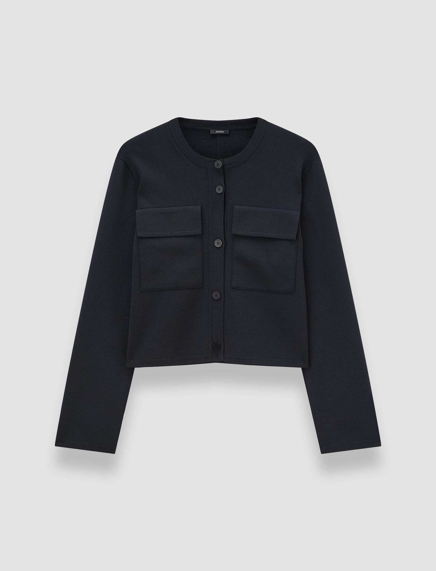 The Viscose Knit Stretch Cardigan Jacket is a boxy fit style. This elegant, clean cut piece is crafted from a viscose blend, a smooth, compact fabric which is comfortable and stretchy. Model wears size M Details - Boxy fit - Cardigan style - Patch pockets - Product code: jf0092470010 Care & Materials - 52% Viscose 25% Polyester 21% Polyamide 2% Elastane - Do not wash - Do not bleach - Do not tumble dry - Iron low temperature setting - Dry clean