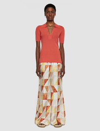 Viscose Rib Knit Polo Top