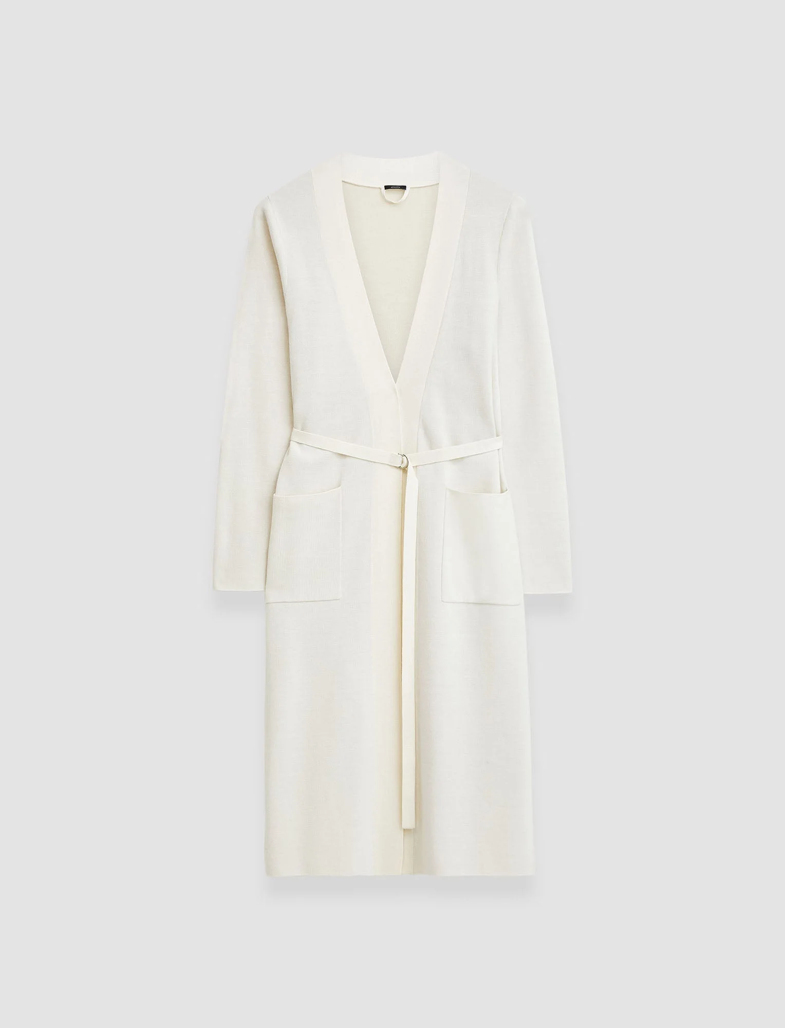 The Wool Silk Long Cardigan is a relaxed fit, belted style, crafted from a blend of merino wool and silk. This piece has been knitted together using a double face technique, which achieves a contrasting tone down the back of the sleeves and on the inside of the cardigan. - Designed for a relaxed fit - Belted style - Front patch pockets - Side slits - Product code: jf0085711107 SIZE ADVICE - Model wears size S CARE & MATERIALS Discover the Care Guide, a guide to help you to care for your garments. - 72% Merino wool 19% Silk 8% Polyamide 1% Elastane - Machine wash, wool/silk program wash, very gentle spin - Do not bleach - Do not tumble dry - Iron low temperature setting - Dry clean normal - Use a wool shampoo - Put in a laundry bag - Wash inside out with similar colours - Dry flat - Iron inside out