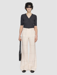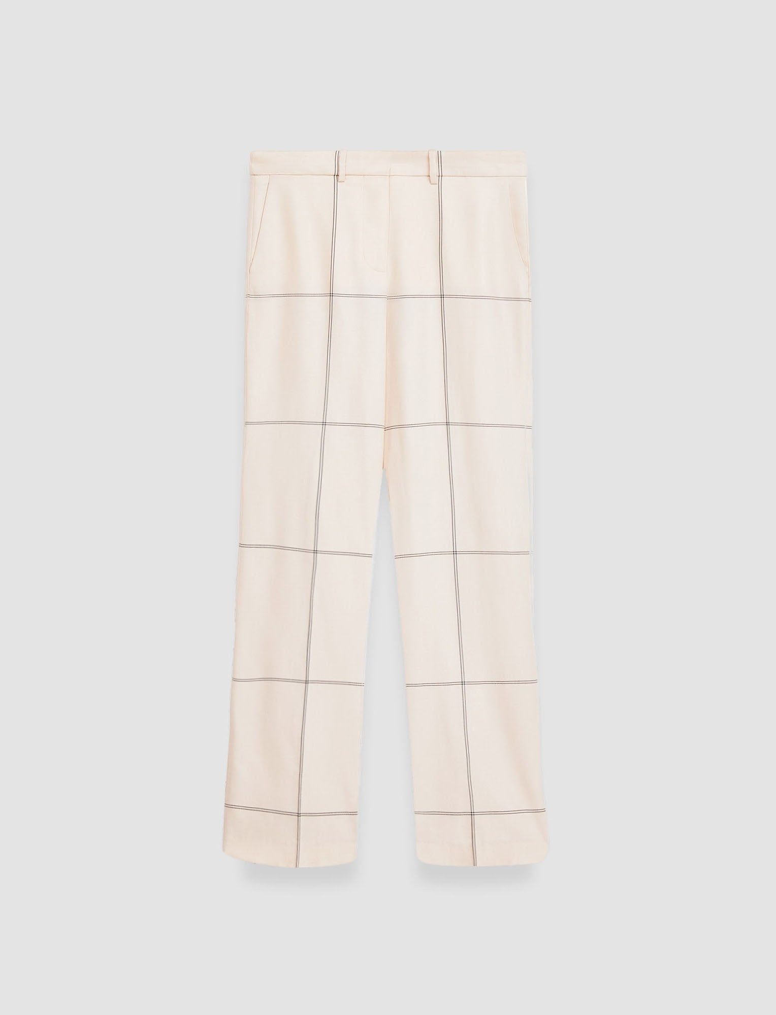 The Wool Tartan Morissey Trousers are a mid-rise, regular fit trouser. Crafted from a blend of virgin wool and viscose, which creates a fluid, tailored look and feel. These elegant trousers have a gradual flare and feature a tartan inspired, grid pattern. - Designed for a regular fit - Gradual flare - Mid-rise - Full-length - Side pockets - Product code: jp0016421963 SIZE ADVICE - Regular outer leg length 113cm - 116cm - Shorter outer leg length 102cm - 105cm - Model wears French size 36 Discover the Trouser Guide and find your perfect fit CARE & MATERIALS Discover the Care Guide, a guide to help you to care for your garments. - 51% Virgin wool 49% Viscose - Do not wash - Do not bleach - Do not tumble dry - Iron low temperature setting - Dry clean mild