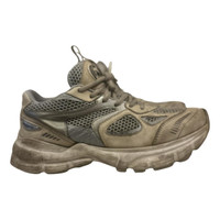 SSENSE EXCLUSIVE Grey & Off-white Marathon Runner - handmade low top paneled leather and mesh sneakers. - lace-up closure - rubberized logo patch and grosgrain pull loop at padded tongue - logo printed at outer side - textured rubber midsole featuring logo embossed at heel - treaded rubber outsole - made in Portugal Personal notes: - i wore them for a year but they are in good condition. The original color has a “dirty” look (this is how it was designed). That being said, what you see in the picture is not dirt, it’s the original design of the sneakers. - a couple of tears as seen in the last pictures. - a little discoloration as seen in the last pictures. - true to size, comfortable. Details Online since:2023-03-25 Categories: women Category: Shoes Sub-category: Trainers Designer: Axel Arigato Condition: 0 Material: Leather Colour: Ecru Size: 37 EU Location: Brooklyn Reference: 31991863