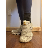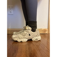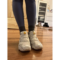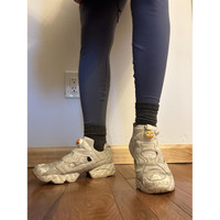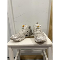 White Reebok x VETEMENTS Classic Edition Logo Emoji Instapump Fury Sneakers - Worn, in good condition. - retails for 990$. - low-top neoprene and technical canvas sneakers. - cut-out detailing and logo bonded in grey throughout. - buffed leather panel at round toe. - signature “instapump system” featuring mismatched graphics at vamps. - grosgrain pull loop and embroidered logo and tongue. - Grossgrain pull loop, sculpted leather applique and embroidered logo at padded heel counter. - tonal treaded rubber island sole, tonal stitching. Personal notes: - fits a bit snug. I am a EU 37 and this one fits me great (EU 37.5). - i’ve worn it over the years so it needs to be cleaned, but other than that it’s in perfect condition. - comfortable. Details Online since:2023-03-25 Categories: women Category: Shoes Sub-category: Trainers Designer: Reebok x VETEMENTS Condition: 0 Material: Cloth Colour: White Size: 37.5 EU Location: Brooklyn Reference: 31992198