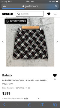 Brand Name :- BURBERRY LONDON BLUE LABEL . 📌 Tag Size :- 36 . MEASUREMENT: -Follow the manual measurement provided. -Waist : 13' Inches -Hips : 17' Inches -Length : 15.5' Inches -Comparing the measurements with your own skirts are the best way before purchasing. -Please do not rely on tag size as pre-worn items. -They may have been altered, stretched or shrunk & vintage sizes do not directly translate the modern sizes. -Please enlarge the photos for clear image. . CONDITION: -USED CONDITION -NO FLAW -Used item, have sign of wear. . Please see all the photos that we provided and refer to our manual measurements. If there any doubts feel free to message us first before make purchase. . The item will be sent within 1-3 working days after payment is completed. . SHIPPING METHOD: -Standard Shipping DHL E-Commerce International (7-21 working days). -DHL EXPRESS (ETA 5-7 WORKING DAYS) -Add $10 -Tracking number is provided. . The postage cost is including handling cost. Please leave your phone number for postage purposes. . No Refund & Return Accepted, Please do see all photos and read description before purchase. Good price for bundle purchase. . -------------------------------------------------------------------- Have An Amazing Blessed Days People!! And Thanks You :)