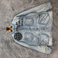 Brand Name :- HEX ANTISTYLE SKATE ROCK THE INSANITY WORLD DISTRESS DENIM JACKET #6299-59 . 📌 Tag Size :- M . MEASUREMENT: -Follow the manual measurement provided. -Armpit to armpit - 23.5' Inches -Length - 28.5' Inches -Shoulders - 19.5' Inches -Sleeve Length - 24.5' Inches -Comparing the measurements with your own shirt are the best way before purchasing. -Please do not rely on tag size as pre-worn items. -They may have been altered, stretched or shrunk & vintage sizes do not directly translate the modern sizes. -Please enlarge the photos for clear image. . CONDITION: -USED CONDITION -GOT FLAWS (REFER PHOTO) -Used item, have sign of wear. . Please see all the photos that we provided and refer to our manual measurements. If there any doubts feel free to message us first before make purchase. . The item will be sent within 1-5 working days after payment is completed. . SHIPPING METHOD: -Standard Shipping E-Commerce International (7-21 working days) -DHL EXPRESS (ETA 5-7 WORKING DAYS) -Add $10 -Tracking number is provided. . The postage cost is including handling cost. Please leave your phone number for postage purposes. . No Refund & Return Accepted, Please do see all photos and read description before purchase. Good price for bundle purchase. . -------------------------------------------------------------------- Have An Amazing Blessed Days People!! And Thanks You :)