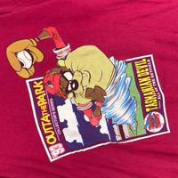 Brand Name :- Warner Bros Tasmania Single Stitch 100 Cotton Tee Copyright 93' Warner Bros . ๐ Tag Size :- X-Large . MEASUREMENT: -Follow the manual measurement provided. -Armpit to armpit - 24' Inches -Length - 27.5' Inches -Shoulders - 23.5' Inches -Sleeve Length - 7.5' Inches -Comparing the measurements with your own shirt are the best way before purchasing. -Please do not rely on tag size as pre-worn items. -They may have been altered, stretched or shrunk & vintage sizes do not directly translate the modern sizes. -Please enlarge the photos for clear image. . CONDITION: -GOOD USED CONDITION -NO HOLE AND GOT SMALL STAIN -Used item, have sign of wear. . Please see all the photos that we provided and refer to our manual measurements. If there any doubts feel free to message us first before make purchase. . The item will be sent within 1-5 working days after payment is completed. . SHIPPING METHOD: -Standard Shipping DHL E-Commerce International (7-21 working days). -DHL EXPRESS (ETA 5-7 WORKING DAYS) -Tracking number is provided. . The postage cost is including handling cost. Please leave your phone number for postage purposes. . No Return Accepted, Please do see all photos and read description before purchase. Good price for bundle purchase. . -------------------------------------------------------------------- Have An Amazing Blessed Days People!! And Thanks You :)