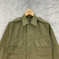 Brand Name :- Army Jacket . 📌 Tag Size :- Medium . MEASUREMENT: -Follow the manual measurement provided. -Armpit to armpit - 19.5' Inches -Length - 29' Inches -Shoulders - 17' Inches -Sleeve Length - 21.5' Inches -Comparing the measurements with your own shirt are the best way before purchasing. -Please do not rely on tag size as pre-worn items. -They may have been altered, stretched or shrunk & vintage sizes do not directly translate the modern sizes. -Please enlarge the photos for clear image. . CONDITION: -USED CONDITION -NO FLAW -Used item, have sign of wear. . Please see all the photos that we provided and refer to our manual measurements. If there any doubts feel free to message us first before make purchase. . The item will be sent within 1-5 working days after payment is completed. . SHIPPING METHOD: -Standard Shipping E-Commerce International (7-21 working days) -DHL EXPRESS (ETA 5-7 WORKING DAYS) -Tracking number is provided. . The postage cost is including handling cost. Please leave your phone number for postage purposes. . No Refund & Return Accepted, Please do see all photos and read description before purchase. Good price for bundle purchase. . -------------------------------------------------------------------- Have An Amazing Blessed Days People!! And Thanks You :)