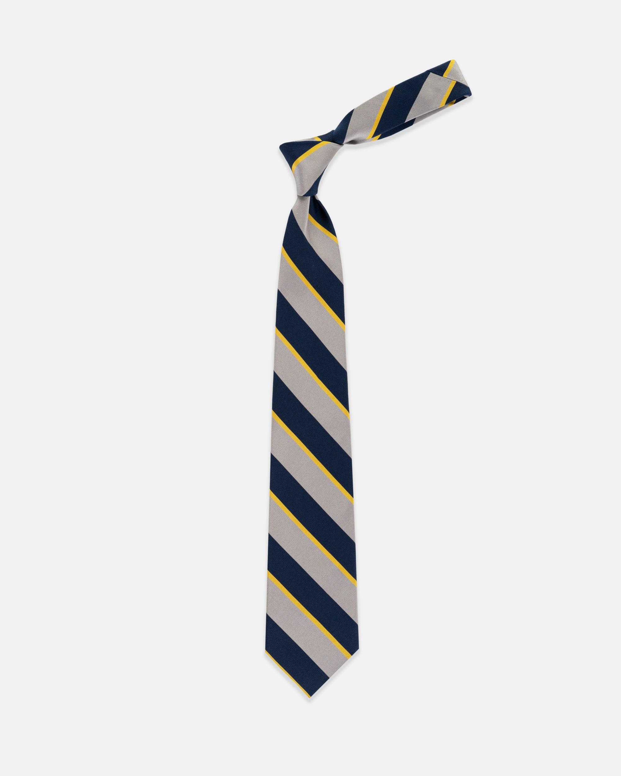 MADE-IN-ENGLAND SILVER, NAVY & YELLOW STRIPE MOGADOR TIE