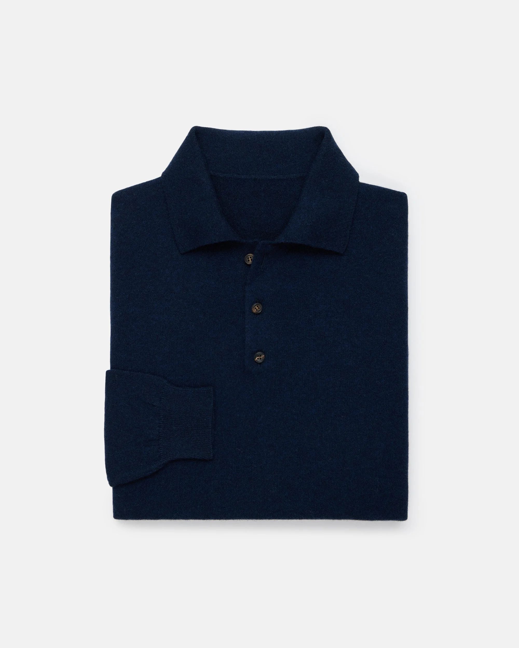 MADE-IN-ITALY CASHMERE LONG SLEEVE POLO - NAVY