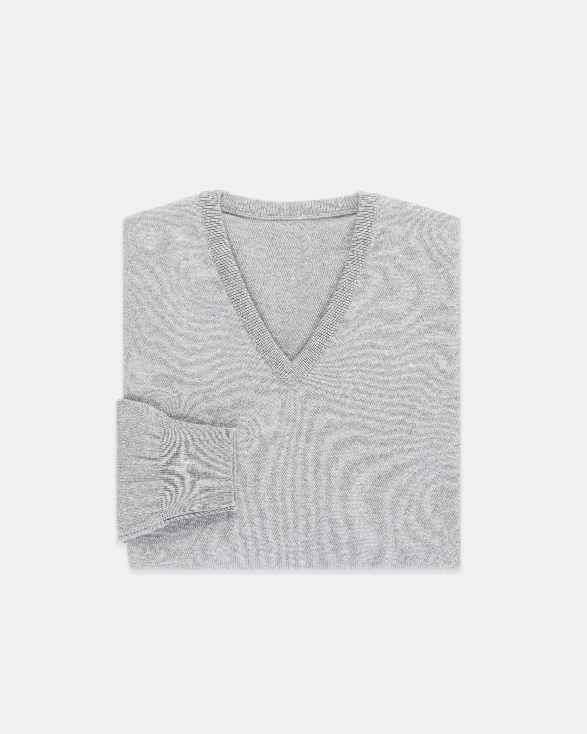 MADE-IN-SCOTLAND LIGHT GREY CASHMERE V-NECK SWEATER - CLASSIC FIT