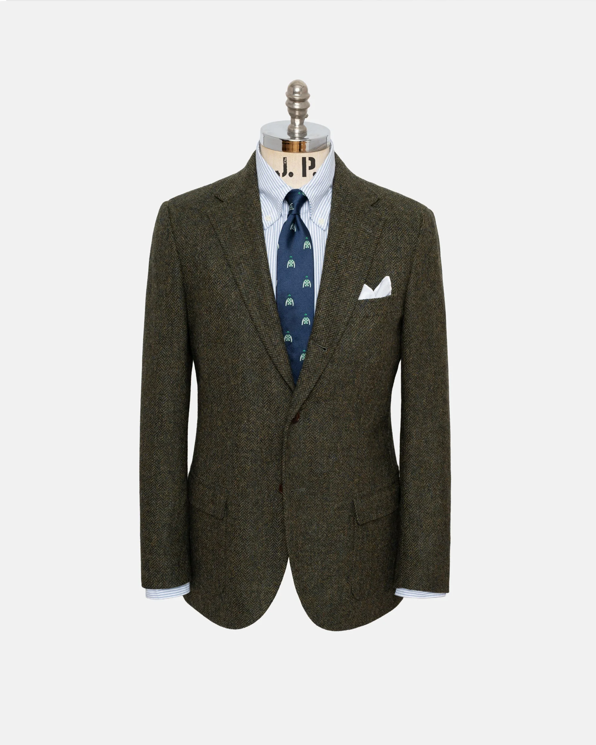 OLIVE HERRINGBONE WOOL SPORT COAT - TRIM FIT