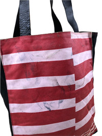 Dries Van Notten - heavy cotton material + leather handle - rubber print bold stripe - 5 compartment - good size for daily use Measurements Width - 12.5” Height - 15” Dept - 4.5” *inches Condition - stain some area refer picture or contact me if you have any questions Thank you