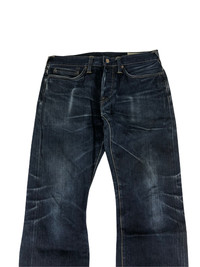 Evisu - 16oz denim - 5 pocket jeans - embroidered seagull logo - gold selvedge - made in china size on tags 32 Condition - used condition top button broken ,naturally faded , hole & distressed part and altered refer picture and measurements or contact me if you have any questions thank you bundle are welcome
