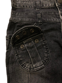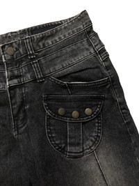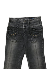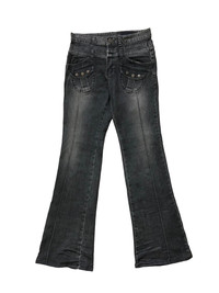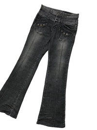 - 6 pocket - heavy cotton material - stretchable - flare cut - double waist 2 button problem refer picture or contact me if you have any question thank you