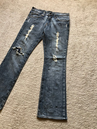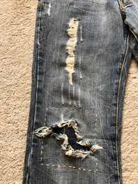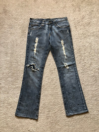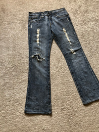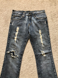 - heavy cotton material - 5 pocket - distressed style - Flare cut - made in Japan Condition still good refer picture or contact me if you have any questions thank you