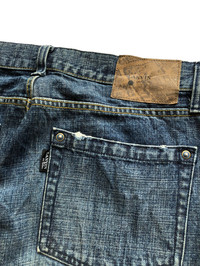 Lanvin - 5 pocket denim - brush painted design - heavy denim material Made in Japan measurements - Waist 16” - Front Rise 9.5 - Thigh 10.5” - Inseam 32.5” - Leg opening 9.5” *inches * all measurements taken with garments flat on the floors * do not rely on tag size as pre-owned items may have been stretched or shrunk and vintage size do not directly translate the modern size * the best way to ensure a correct fit is to compare our measurements with the measurements of a similar item that you know fits you well Condition: - Still in good condition refer picture or contact me for more detail