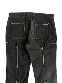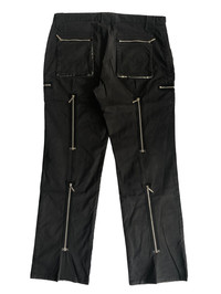 BURBERRY - Black Label ( Japan release ) - 90s era - Multi zipper pant / bondage design trousers -Stretchable material - 6 pocket - made in Japan Size on tags : 82 Measurements Waist : 17” Front Rise : 10” Thigh : 11” Inseam : 28.5” Out seam : 38” Leg opening : 8” * all measurements taken with garments flat on the floors * do not rely on tag size as pre-owned items may have been stretched or shrunk and vintage size do not directly translate the modern size * the best way to ensure a correct fit is to compare our measurements with the measurements of a similar item that you know fits you well Condition: - Colour bit faded (sun faded ) thigh area , overall still in good vintage condition refer picture or contact me for more details