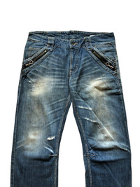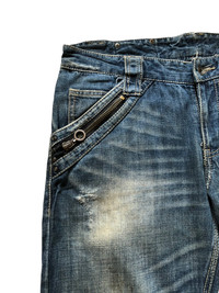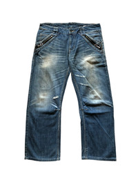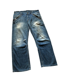 - heavy cotton material - 8 pocket - baggy fit - distressed - made in Japan - Condition 1 zipper puller gone , overall still good refer picture or contact me if you have any questions thank you
