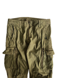 Grasum Japan - Military inspired Cargo Trousers - distressed design - 2 Ankle zip (back) - heavy cotton material \ Denim material Size on tags : Small Measurements - Waist 15” - Front Rise 9” - Thigh 10” - Inseam 30” - Outseam 39” - Leg opening 8” * all measurements taken with garments flat on the floors * do not rely on tag size as pre-owned items may have been stretched or shrunk and vintage size do not directly translate the modern size * the best way to ensure a correct fit is to compare our measurements with the measurements of a similar item that you know fits you well Condition: - Still in good condition refer picture or contact me for more details