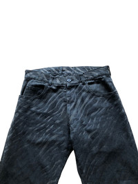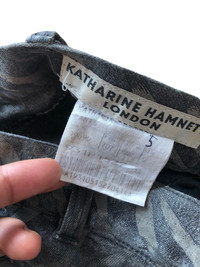 Katharine Hamnett - 90s era - 5 pocket jeans - Heavy cotton material - Zebra velvet rubber print - Slim straight cut - Made in japan Size on tag S fit waist size 29 there are sign of wear ,no flaws overall still in good condition refer picture or contact me if you have any questions Thank you:)