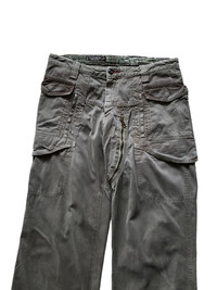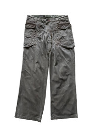 - super heavy cotton material - 6 pocket with snap button and zipper - fit straight cut - made in Italy - 1 zipper puller missing overall still in good condition refer picture or contact me if you have any questions thank you :)