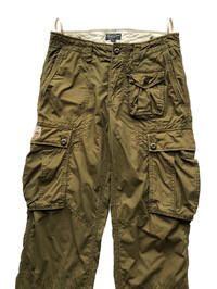 Polo Ralph Laurent - 7 pocket pant - military style pant - heavy cotton material - Straight / loose cutting Made in Japan measurements - Waist : 17” - Front Rise : 10.5” - Thigh : 11.5” - Inseam : 28.5” - Outseam : 38.5” - Leg opening : 9” *inches * all measurements taken with garments flat on the floors * do not rely on tag size as pre-owned items may have been stretched or shrunk and vintage size do not directly translate the modern size * the best way to ensure a correct fit is to compare our measurements with the measurements of a similar item that you know fits you well Condition: - Still in good condition refer picture or contact me for more detail