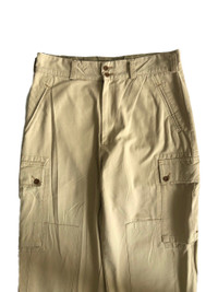 Polo Ralph Laurent - Heavy cotton material - 6 pocket cargo pant - loose cutting Size on tags : 32 Measurements - Waist 16” - Front Rise 13” - Thigh 12.5” - Inseam 32” - Outseam 44” - Leg Opening 9.5” * inches * all measurements taken with garments flat on the floors * do not rely on tag size as pre-owned items may have been stretched or shrunk and vintage size do not directly translate the modern size * the best way to ensure a correct fit is to compare our measurements with the measurements of a similar item that you know fits you well Condition: - Still in good condition refer picture or contact me for more details