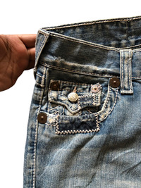 - 5 pocket jeans - heavy cotton material - made in USA pre-owned condition with minor sign of wear refer picture or contact me if you have any questions thank you