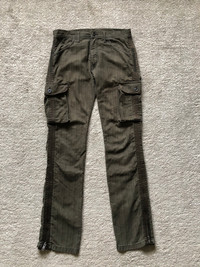 - heavy cotton material - 6 pocket - ankle zipper - side stripe - straight cut pre-owned with minor sign of wear refer picture or contact me if you have any question thank you