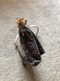 Japanese hand made - cotton knit material - 1 button - 2 compartment - super nice size - leather strap - made in japan Measurements width - 9.5 height - 6.5 *inches still in good condition , refer picture or contact me if you have any questions check my other listing tooooo 🫶🏼 Thank you