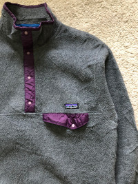 Patagonia - 1990s - 100 polyester - one pocket - quater button - made in usa size on tag M condition still good, no flaws refer picture or contact me if you have any questions
