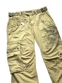 Polo Ralph Laurent - Ripstop material - Peacock Printed - 7 pocket - 2 ankle zipper Size on tag : 6 Measurements: - Waist : 16.5” - Front rise : 8.5” - Thight : 9.5” - Inseam : 25.5” - Outseam : 34.5” - Leg opening: stretchy * all measurements taken with garments flat on the floors * do not rely on tag size as pre-owned items may have been stretched or shrunk and vintage size do not directly translate the modern size * the best way to ensure a correct fit is to compare our measurements with the measurements of a similar item that you know fits you well Condition - still in good vintage condition refer picture or contact me for more detail