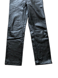 - leather material - 5 pocket jeans - made in USA - Size on tag 32 - Gently used ,no flaws or stain . only need professional wrinkles remover, refer picture or contact me if you have any question thank you