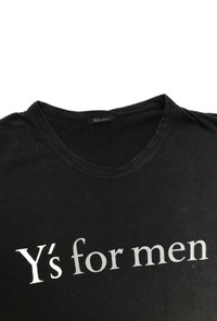 Yohji Yamamoto - Vintage Ys for men - front logo tshirt Made in Japan Size on tag - Width : 21” Length: 30” *inches * all measurements taken with garments flat on the floors * do not rely on tag size as pre-owned items may have been stretched or shrunk and vintage size do not directly translate the modern size * the best way to ensure a correct fit is to compare our measurements with the measurements of a similar item that you know fits you well Condition - Still in good vintage condition refer picture or contact me for more detail