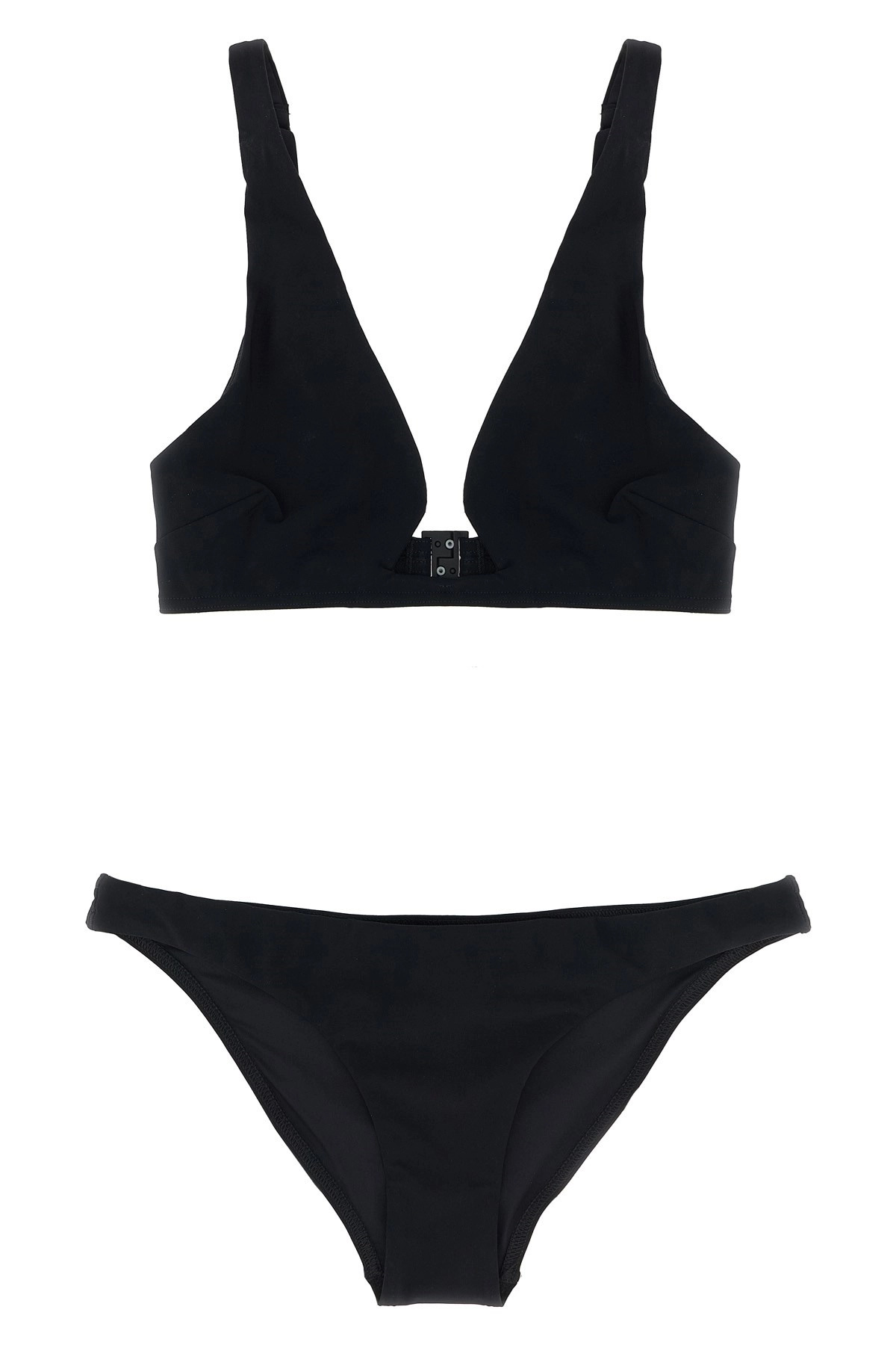 cod. 1065WSS251BLK 'Rhiannon Fire' bikini top with adjustable straps, triangular shape with underwire on the neckline, low waist bottoms. Color: Black Size & Fit: True to size fit Composition: 75% polyamide, 25% elastane Made in: China