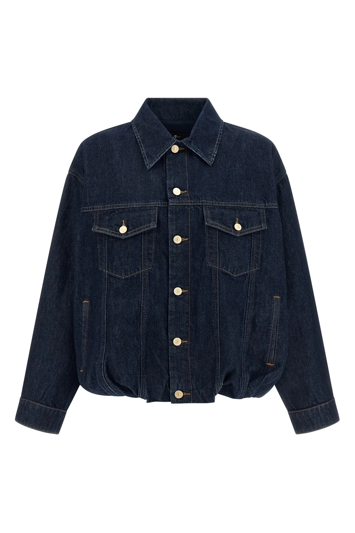 cod. 7U5E0E48U71ZI 'Gathered' medium weight Japanese cotton denim jacket with contrast stitching, shirt collar, front button closure, pockets, long cuffed sleeves, Curled garment hem, cotton lining. Color: Blue Size & Fit: oversized fit Composition: 100% cotton Made in: Egypt