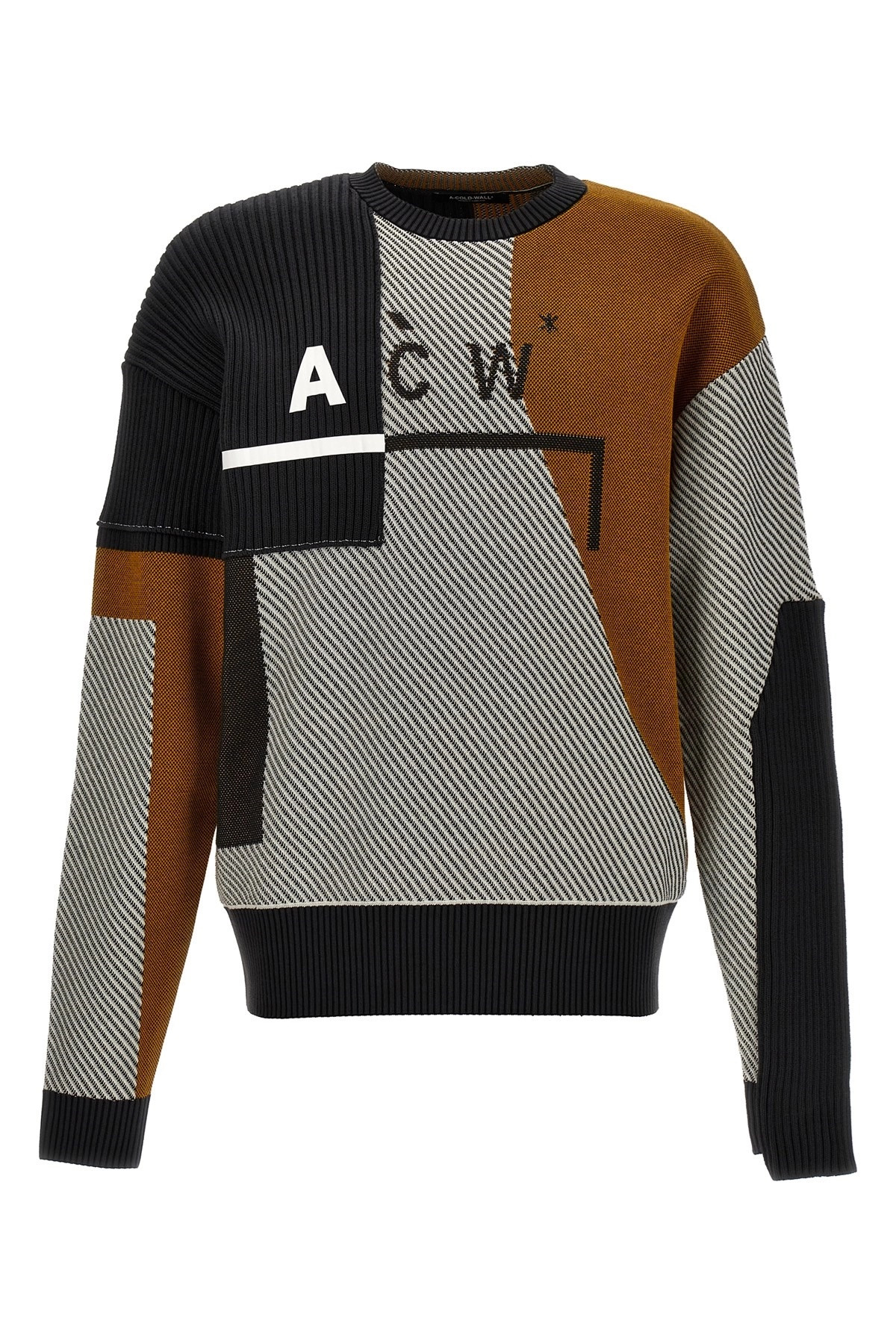 cod. ACWMK157BONE 'Geometric' sweater with patchwork effect pattern, front logo, crew neck, long cuffed sleeves. Color: Multicolor Size & Fit: true to size fit Composition: 66% cotton, 34% polyester Made in: China