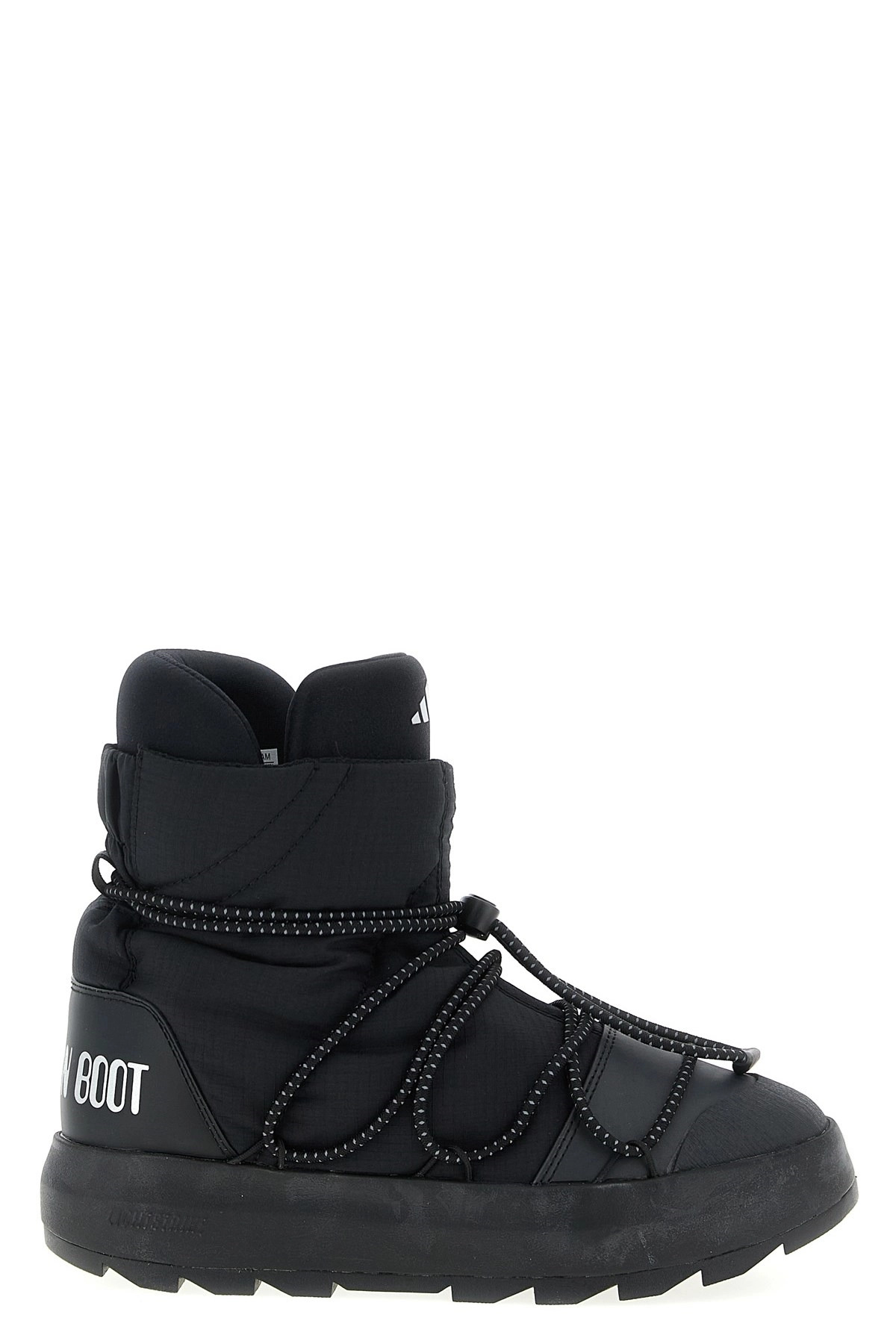 cod. JP7766CBLACKCBLACK Adidas x Moonboot 'Ace' ankle boots in fabric and multi-layer synthetic material, back logo, Lightstrike Adidas technology with superlight and responsive foam cushioning, Quicklace closure, rubber sole. Color: Black Size & Fit: ADIDAS UK UNISEX Composition: 100% textile Made in: Vietnam