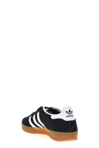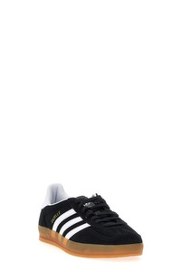 cod. JI2060CBLACKFTWWHTGUM2 'Gazelle Indoor' suede sneakers with contrast leather details, nylon tongue with 3D effects, lace-up closure, rubber sole. Color: Black Size & Fit: UK UNISEX Composition: 100% calfskin leather (Bos Taurus) Made in: Indonesia