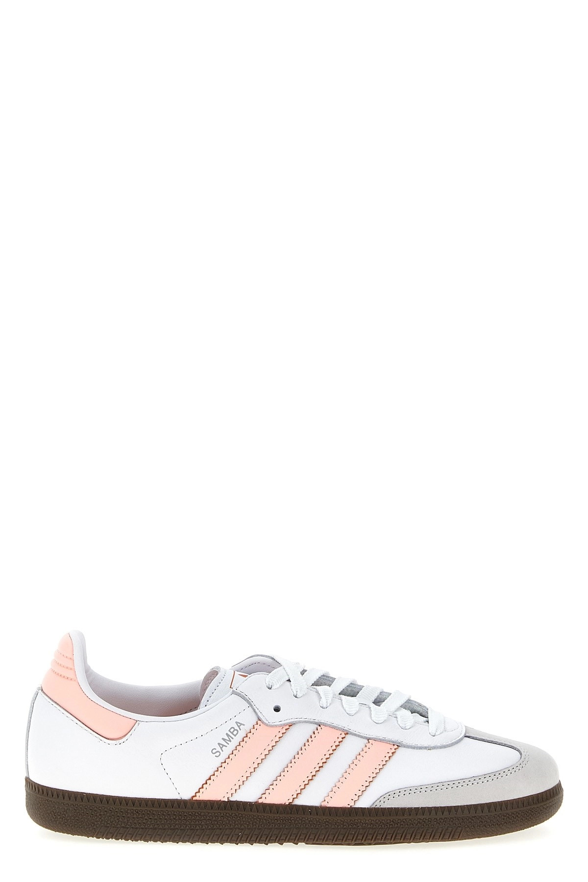 cod. JH5687FTWWHTCLEORASEMCOR 'Samba OG' leather sneakers with contrasting details, suede toe, lace-up closure, rubber sole. Color: White Size & Fit: ADIDAS UK WOMAN Composition: 100% calfskin leather (Bos Taurus) Made in: Indonesia