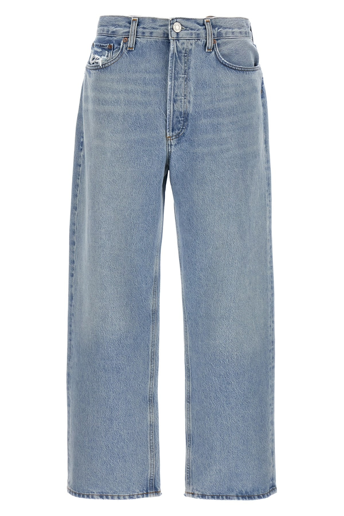 cod. A6421141SNPSH '90's' cotton denim jeans with used-effect details, button closure, five pockets, mid-rise model. SUSTAINABLE: This product is made of organic cotton. Color: Light Blue Size & Fit: Loose fit Composition: 100% cotton Made in: Turkey