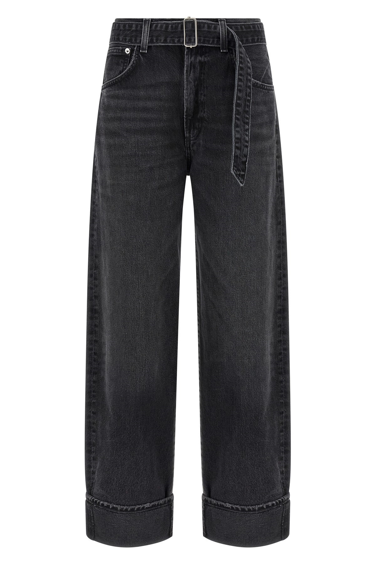 cod. A2701817ARNE 'Cuffer Taper' high waist cotton denim jeans with adjustable belt at the waist with buckle, turn-up hem, zip and button closure, five pockets. Color: Gray Size & Fit: True to size fit Composition: 100% cotton Made in: Turkey