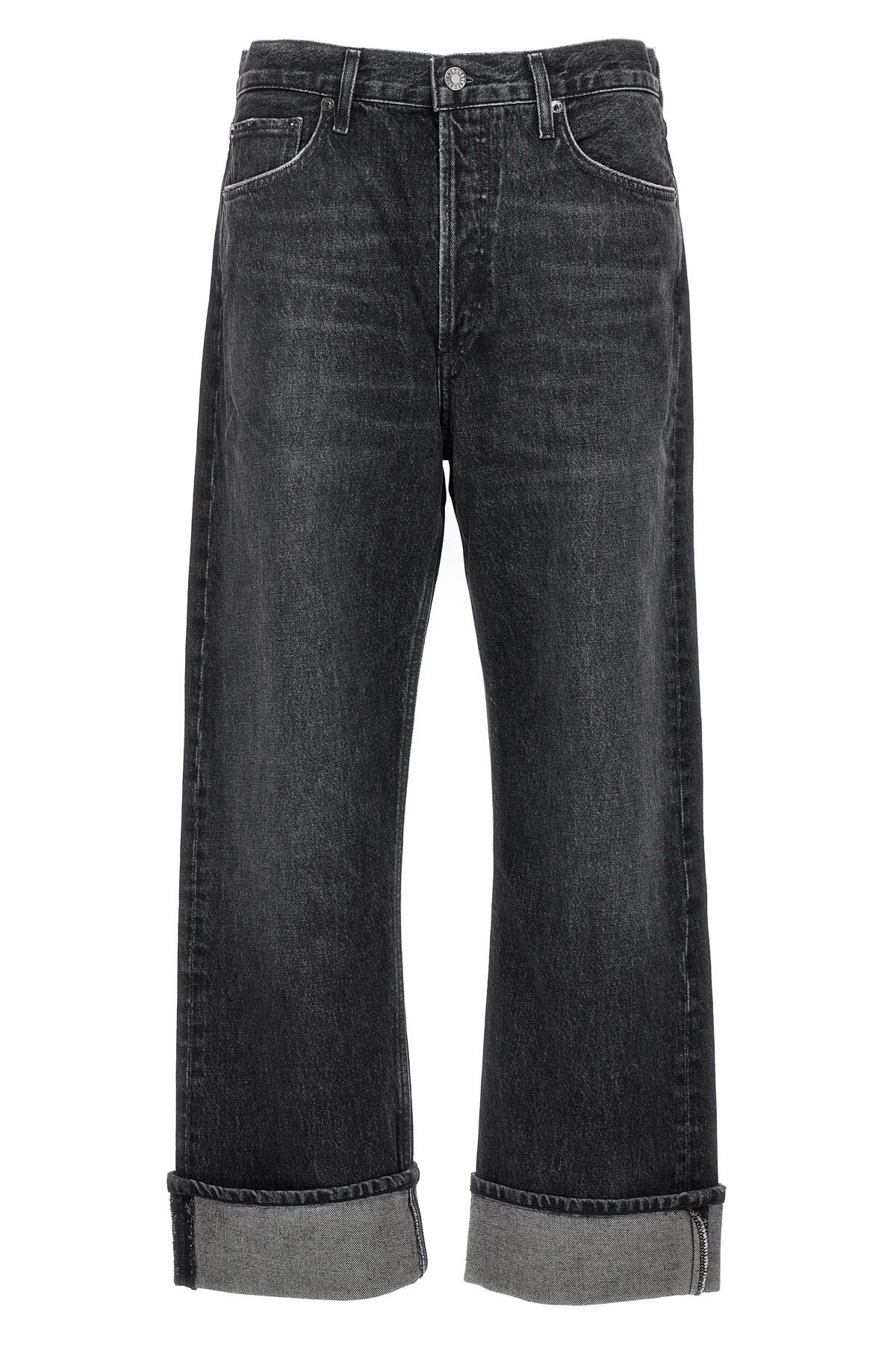 cod. A91571346DITCH 'Fran' medium waist denim jeans with straight and wide leg with turn-up, button closure and 'Ditch' wash. Color: Gray Size & Fit: true to size fit Composition: 100% cotton Made in: Turkey