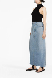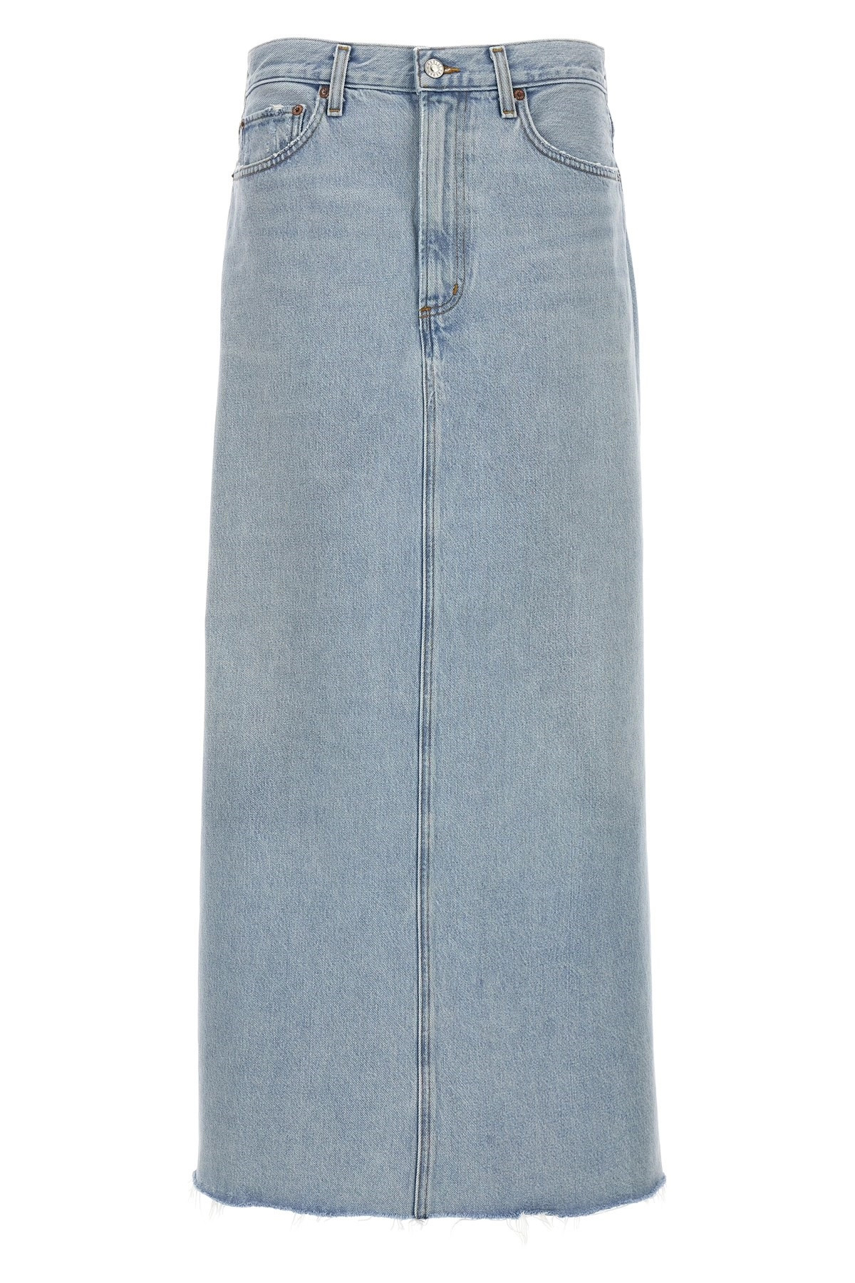 cod. A91111141PRACTICE 'Hilla' skirt in used-effect cotton denim with zip and button closure, back split, frayed hem. SUSTAINABLE: This product is made of regenerated cotton. Color: Light Blue Size & Fit: true to size fit Composition: 100% cotton Made in: United States