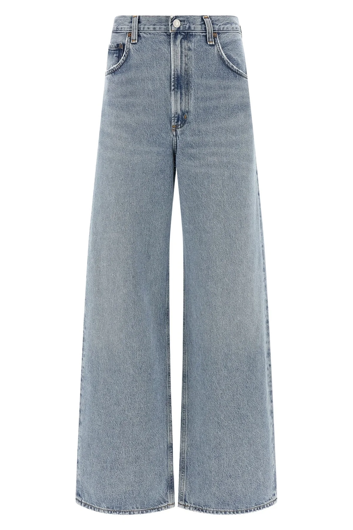 cod. A1971206FORCE 'Low Curve' vintage marbled light indigo denim jeans with discoloration and whiskering, mid waist, slightly tapered wide leg, zip and front button closure, five pockets. SUSTAINABLE: This product is made of regenerated cotton. Color: Light Blue Size & Fit: true to size fit Composition: 100% cotton Made in: Turkey