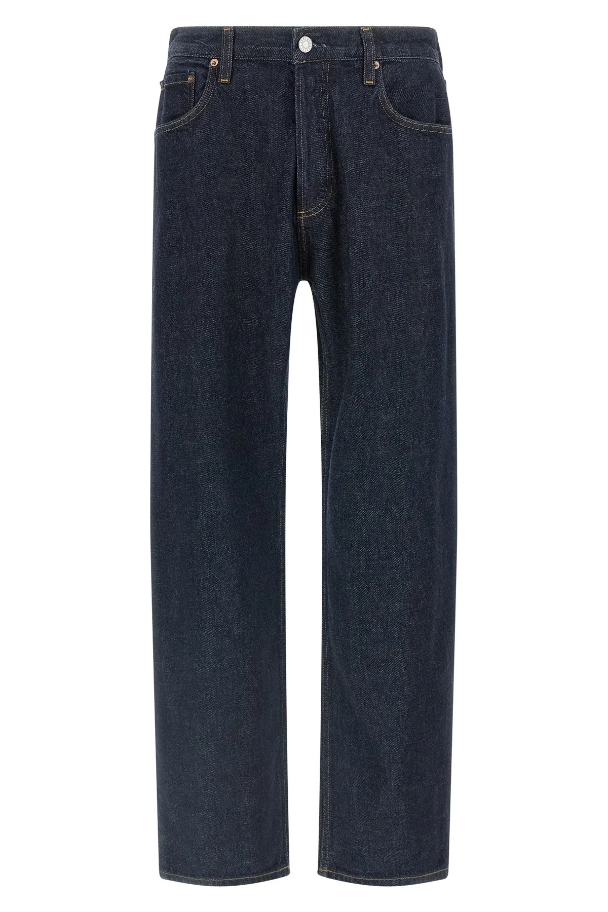 cod. A7031601INE 'Magnus' jeans in Rinse washed cotton denim with contrast stitching, wide straight leg, front button closure, five pockets. SUSTAINABLE: Product made with recycled materials. Color: Blue Size & Fit: true to size fit Composition: 100% regenerative cotton Made in: Turkey